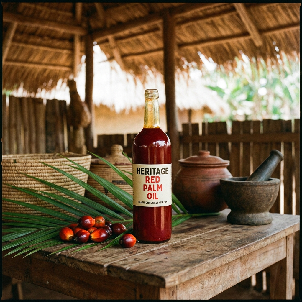 AfricanUnrefined, nutrient-rich palm oil sustainably sourced from West African cooperatives.